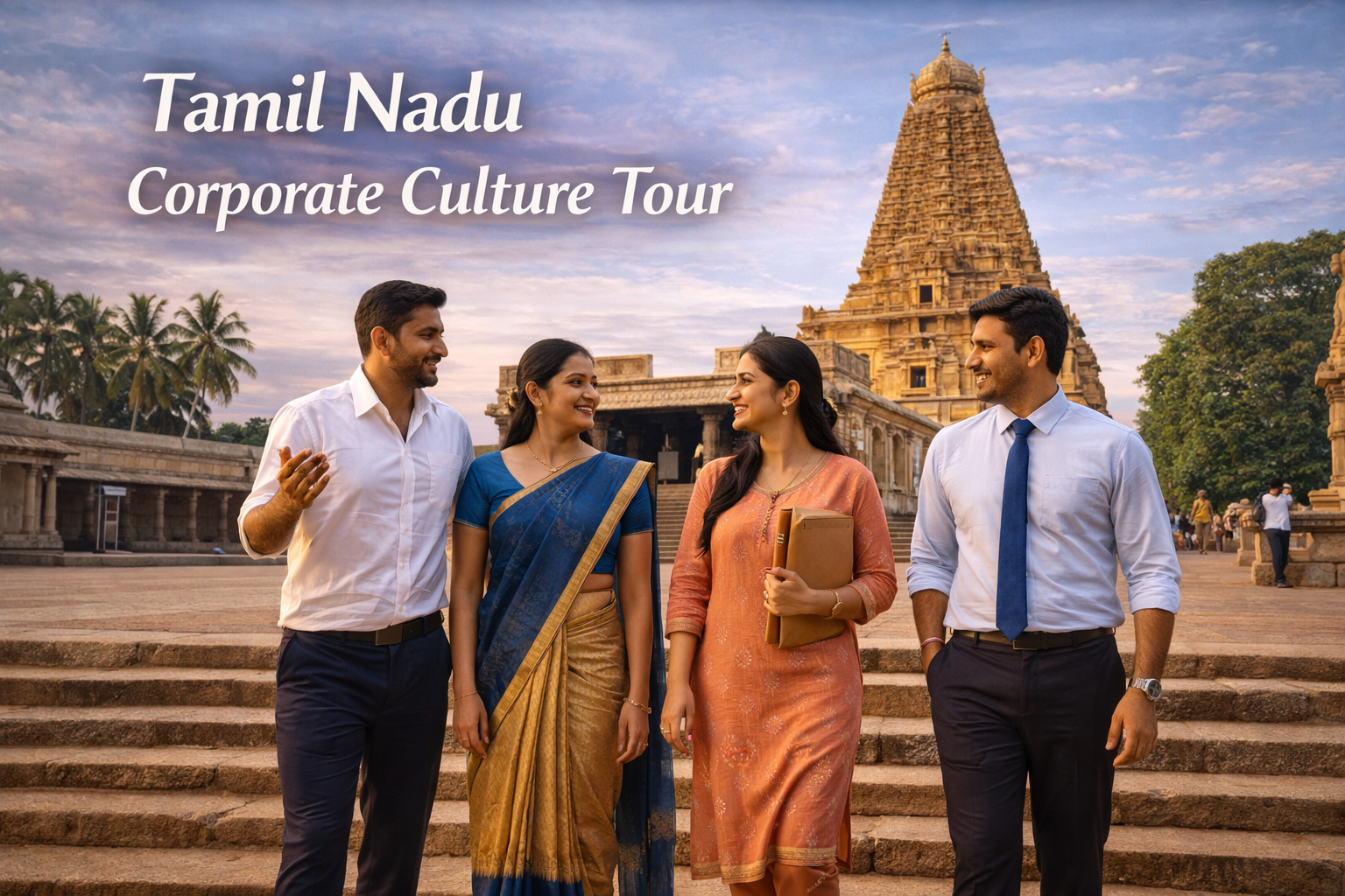 This corporate tour blends professional engagement with cultural exploration. Ideal for corporate teams, incentive groups, and business travelers looking to experience Tamil Nadu’s traditions while enjoying seamless travel and premium hospitality. Day 1: Arrival & WelcomeDay 2: Meetings / Cultural TourDay 3: Departure